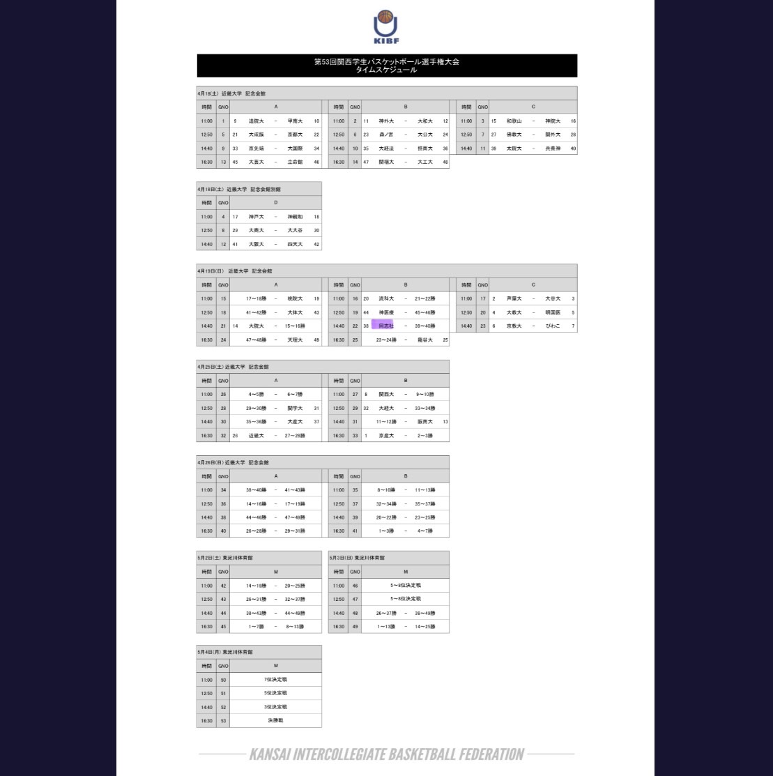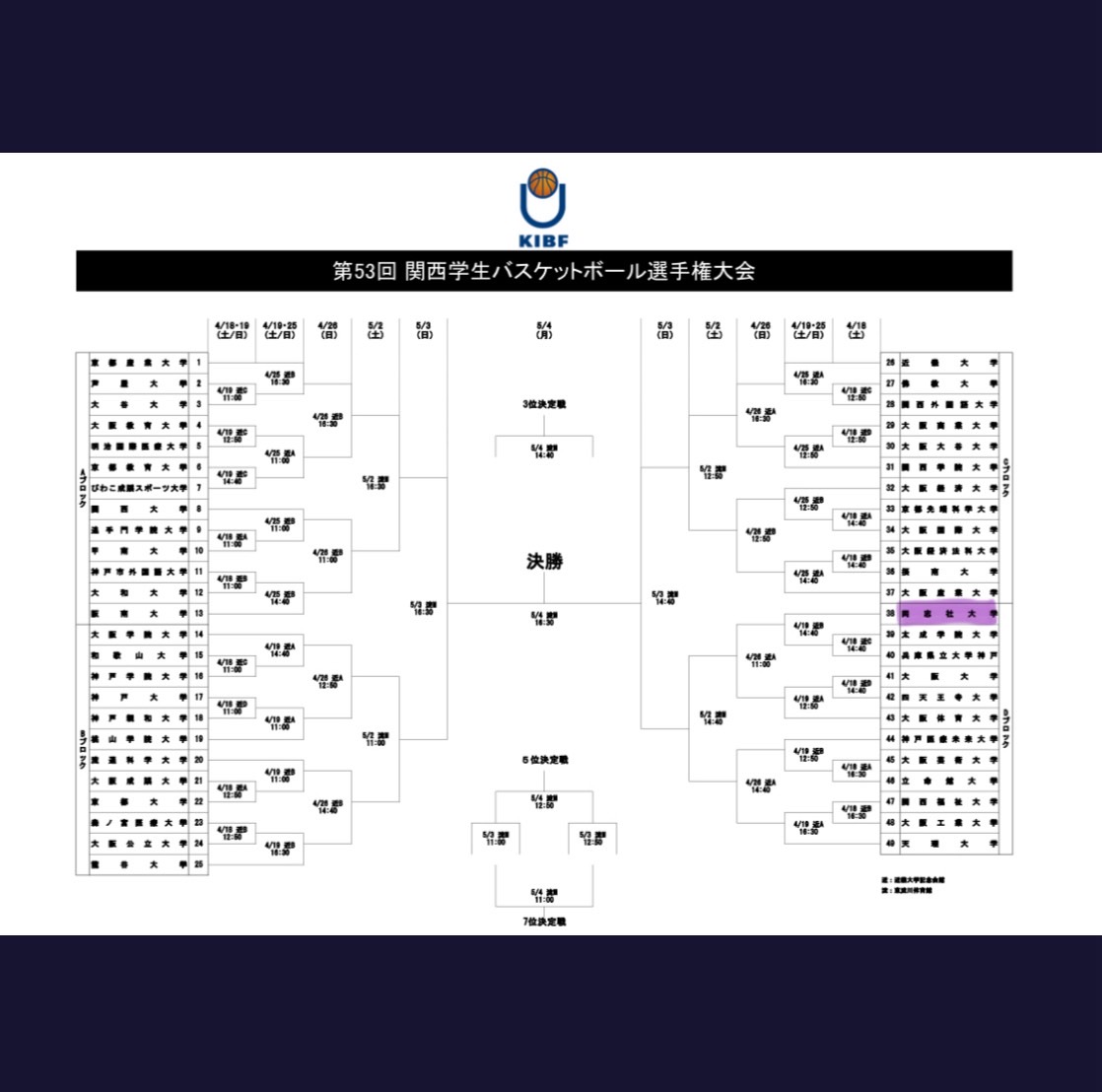 第53回関西学生バスケットボール選手権大会の組み合わせが決定しましたので、ご案内申し上げます。